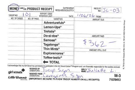 The troop is financially responsible for all the cookies that they receive so tracking inventory is very important. Cookie inventory is tracked in eBudde™ and girl inventory will be reflected in Digital Cookie based upon information from eBudde™. Keep your troop records up to date and be sure that they match all paper receipts.