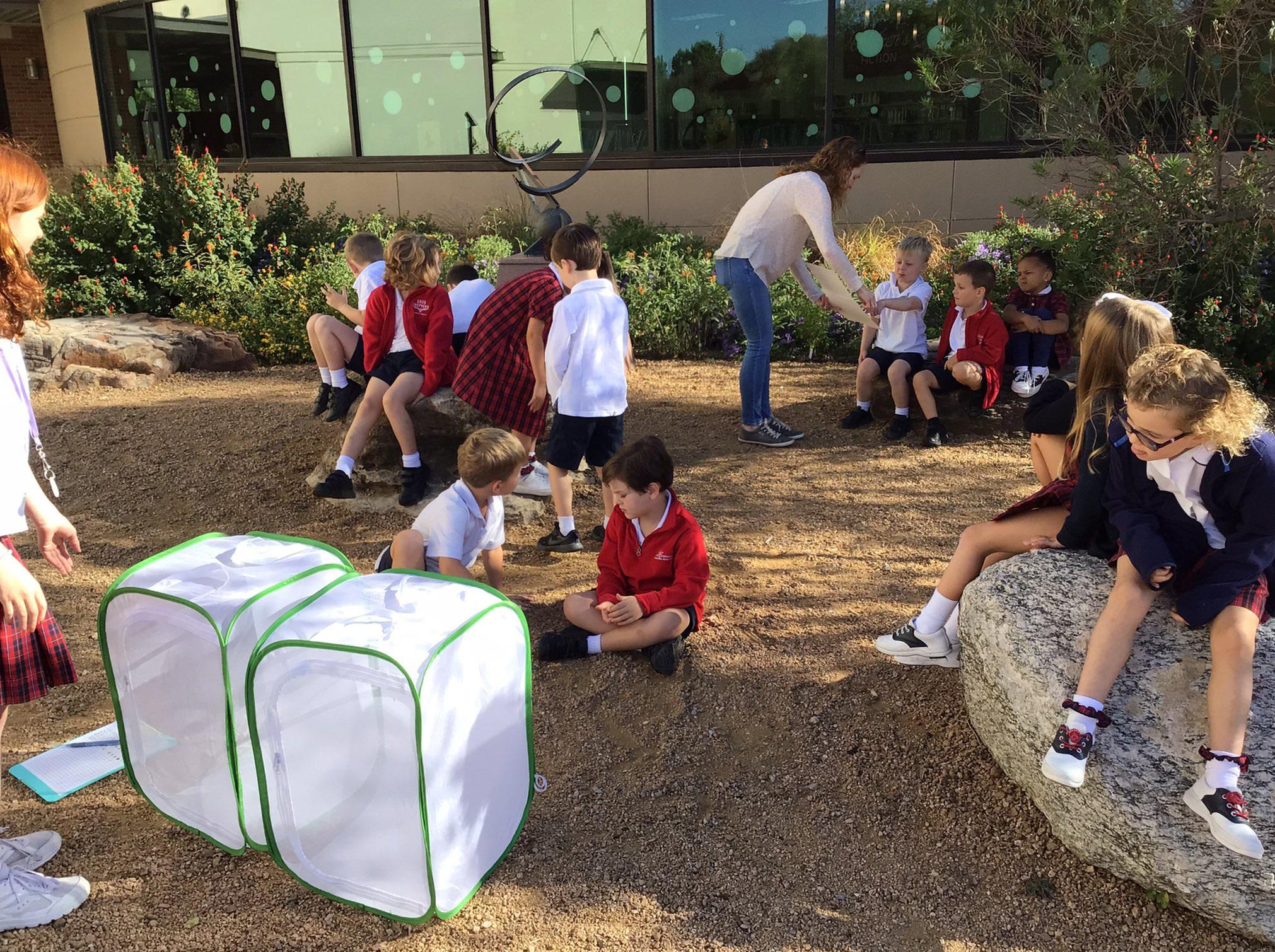 The Early Childhood Community Garden is a new space where students in PreK, Kindergarten, and Primer are being taught a wide range of skills. They are learning life cycles, risk taking, problem solving, how to handle failure, to try new things, and more.