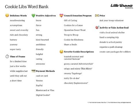 TO START: Review the “Girl Scout Cookies” and “Ingredients & Allergen Guide” guides to learn more about each cookie.