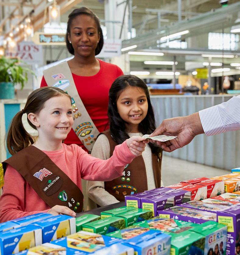 The possibilities are endless! Girl Scouts team up with their parents/caregivers to sell cookies to their employees and coworkers, at places of worship, and at community groups. From preparing a corporate pitch to selling cookies in bulk to car dealerships, real estate agents, or financial institutions, there are so many ways to grow your cookie business.