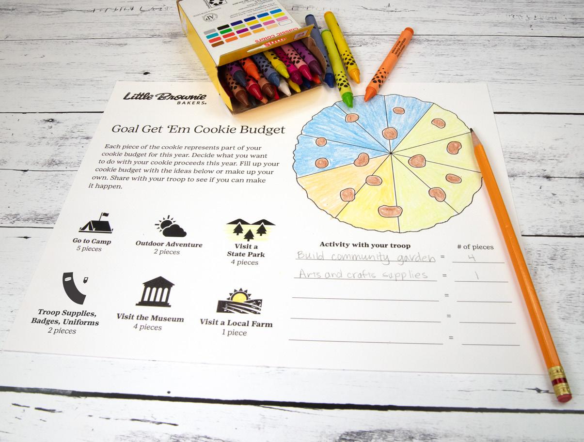 TO START: Discuss with your Girl Scouts what goals you want to set for your first cookie season. Maybe you want to go to the zoo, have a pizza party, buy new troop supplies, or help others in your community. Once you set a goal, you can use the “Goal Tracking Chart” to follow your progress. Included in this packet: