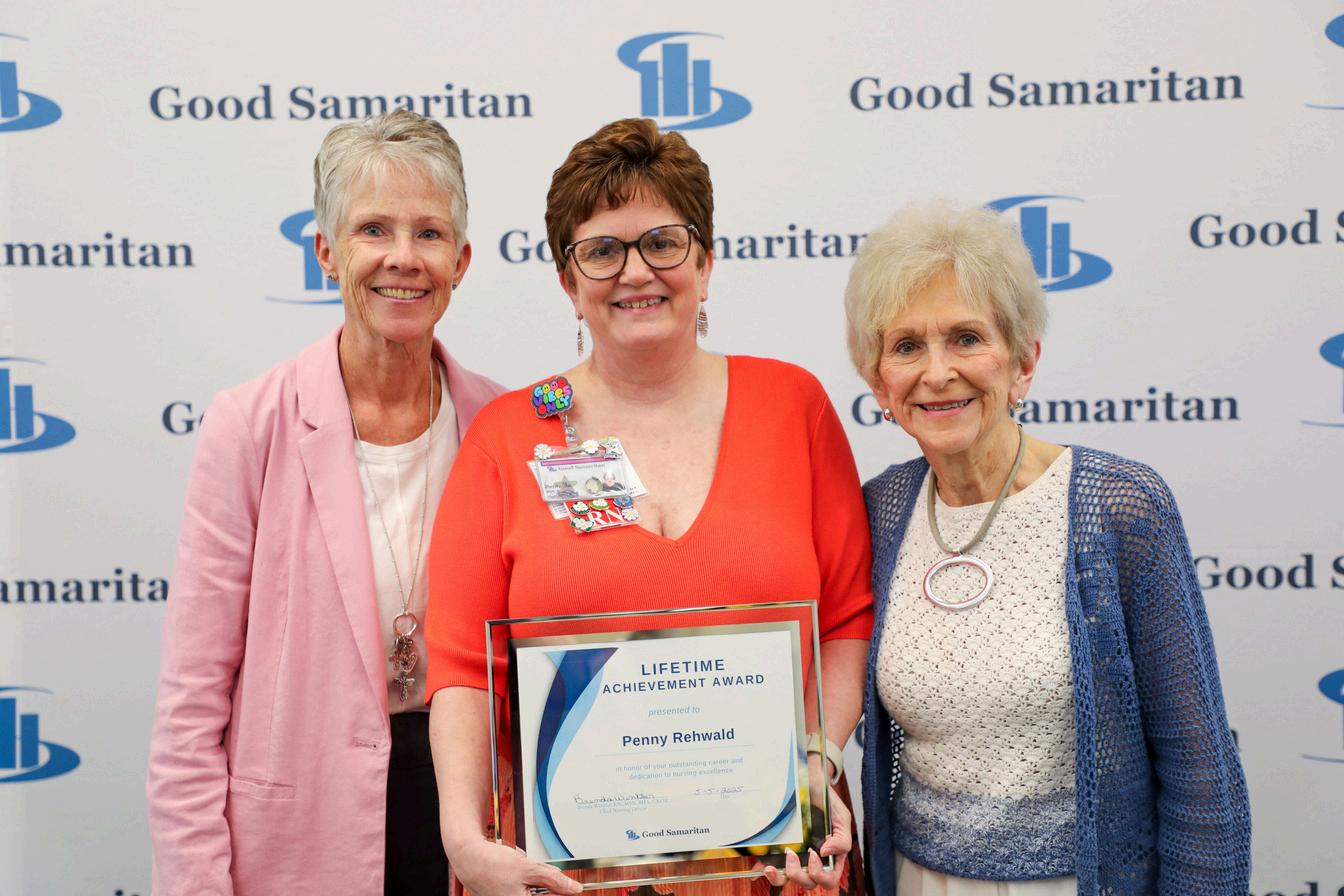 2024GoodSamaritanLifetimeAchievementAwardWinner PhyllisLacy,RN,2025winnerPennyRehwald,RNandthe2023 winnerRitaDonovan,RN.