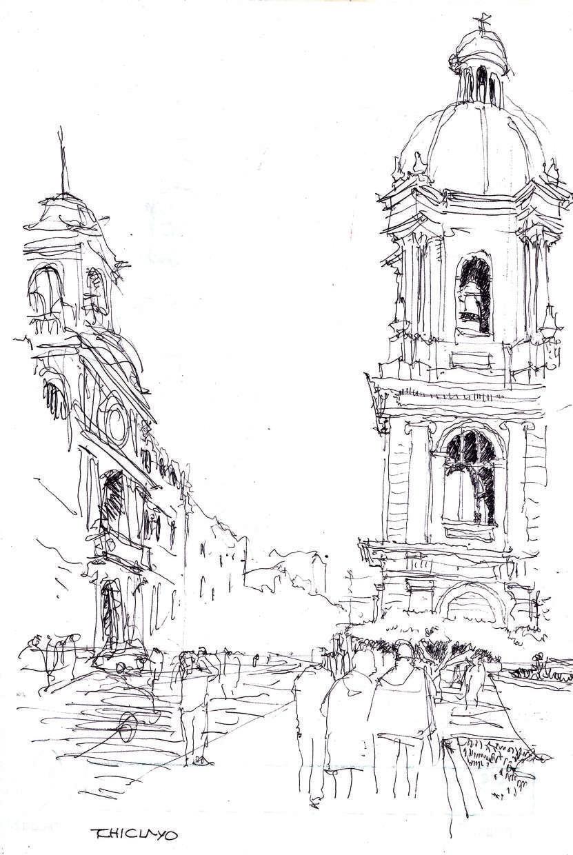 Tener dos frentes de ataque en este caso puede producir confusión y llevar a la desproporción. La torre de la Catedral de Chiclayo está soterrada por un error así. Tengamos siempre en cuenta la línea de horizonte también para la disposición de los volúmenes.
