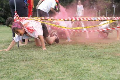 Staff were placed at 7 stations around the course where they cheered and encouraged the students whilst showering them with different coloured powders, which was a lot of fun and extremely therapeutic. Some of the challenges that the students navigated whilst being doused with powder were: Balloon blow, hop and pop, commando crawl, paper plane challenge and domino building.