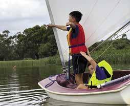 The Sailing Program, which is part of the Year 6 Leadership Program, is a highlight with the students in Term 1. Each student was able to experience three 90 minute sessions sailing on Lillydale Lake. The twoperson sailing dinghies used are an ideal craft to learn the basic principles of sailing in a fun and safe environment. Innovative technical modifications mean that even the very young are able to learn to sail. The dinghies are virtually impossible to capsize. The students learnt about various parts of the vessel and their purposes, as well as learning some sailing terminology. The variable Melbourne weather certainly played its part in allowing for periods of tranquility, only for the wind to suddenly spring to life and catapult the boats through the choppy water. There were many benefits to the Program. Students got to learn through discovery, enhance their decision making skills, work as a team and develop perseverance. All of this ‘learning’ was accompanied by a lot of fun.