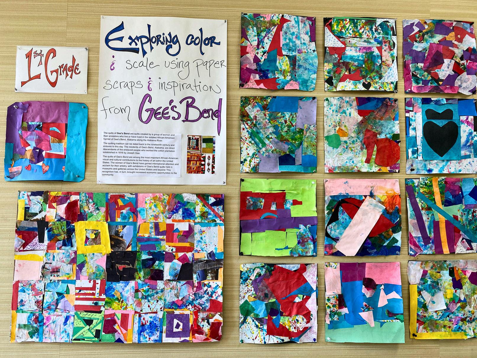 Art in First Grade focuses on building skills and awareness of the art elements of line, shape, form texture, color, and value that were touched upon in kindergarten. These concepts are brought to life by pairing them with an artist or art style, a children’s book, a topic they are learning about in school, a holiday or any number of subject matter from a first grader’s world. Our expectation of children is that they do their best and that they respect the materials in the art room and each other. We hope that every child gains art making confidence and skill, and learns to love creating. Student artwork is continually displayed outside the art room. 3D projects and Holiday projects go home as they are finished; the rest of the artwork goes home at the end of the year.
