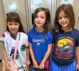 Second Graders Cecilia Ghiorzi, Ava Cooper, and Lucy Riederer sport their Memphis wear on 901 Day.