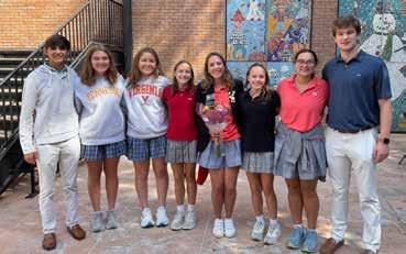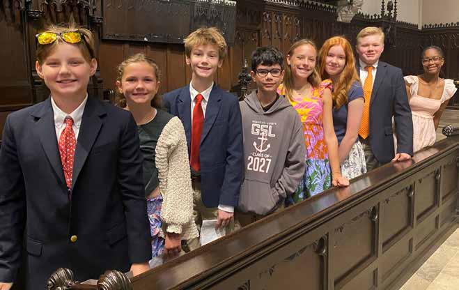 Luker classmates gathered at the St. Mary’s prom in the spring. Front row: Ella Riley, Virginia McLean, Maggie Linkous, Violet Renken, Lydia Ford, Evie Fore, Langston Scrugham, and Mary Clara Smith; back row: Townes Jones, Christopher Morice, Charlie Kofahl, Owens Unglesby, George Brewer, Gregory New, and Foster Houseal