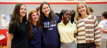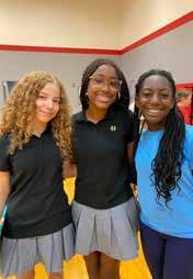 Seventh Graders Autumn Turner, Ka’Myla Butler-Rhyan, and Jordyn Coleman, Eighth Grader Lilly Obasuyi, and Seventh Graders Clara Smith and Mays Meeks enjoy recess in the gym on 901 Day.