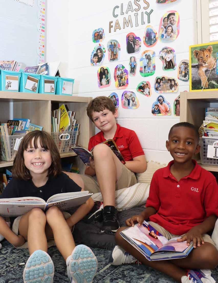 FirstGradersCarterSullivan,OliverHiggins,andGeneChahalare amongthefirststudentstoexperiencethenew,light-filledfirst gradeclassroomsdesignedandcompletedthissummeraspartof theconversionoftheLowerSchoolMultipurposeRoom.Teacher KatieShadow’sroomhasabankofwindows,acozylibraryarea forreading,in-roomlockers,aspaciousstoragecloset,individual studentworkspaces,andateacherdeskidealforsmallgroup instruction. Plus, it’s home to a classroom tree—Carl, the Norfolk Pine! Read more about our recent campus construction projects in thearticlesbeginningonpage10.PhotobyJeffWhite