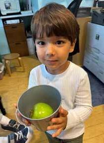 Reyaan Williams learns all about apples during a science and math unit in the Playful Peacocks classroom.