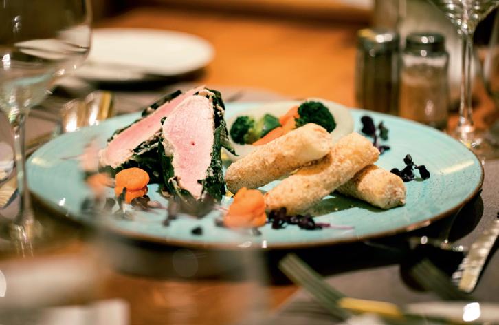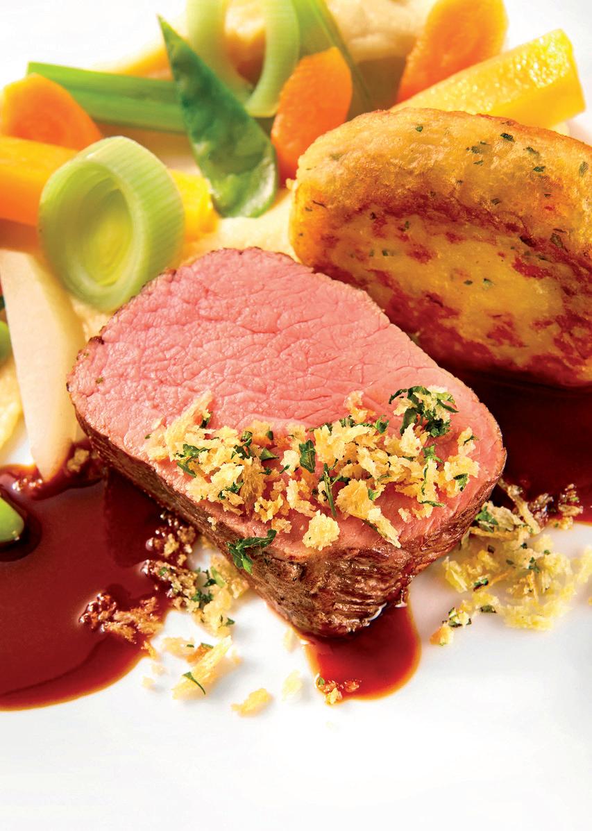 allein Qualität und Geschmack im Vordergrund. Die Herausforderung ist es, auch die Umsetzbarkeit mit eng getakteten Zeitabläufen im Auge zu behalten. Denn anders als in der Restaurantküche ist es hier unbedingt erforderlich, die einzelnen Gänge punktgenau nach jedem Showteil auf den Tisch zu bringen. Grundvoraussetzung dafür ist ein perfekt eingespieltes Team, das Hand in Hand arbeitet.“