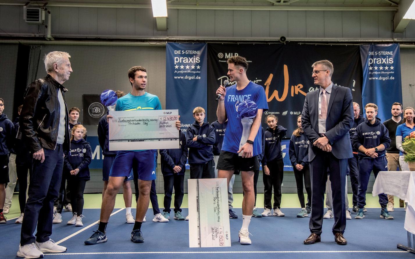 nem Kontrahenten einen Kampf auf Augenhöhe, doch in den entscheidenden Spielphasen fehlte ihm die Fortune, um die durchaus vorhandenen Chancen zu nutzen. Die Ballwechsel der beiden Finalisten gehörten zweifellos zu den besten, die es in der 20-jährigen Geschichte des MLP-Cup je zu sehen gab. Dank knallharter Grundschläge, atemberaubender Rallyes und variantenreicher Spielzüge kamen die rund 450 Zuschauer voll auf ihre Kosten. Viele hätten sich einen dritten Satz gewünscht, so spannend war das Duell.