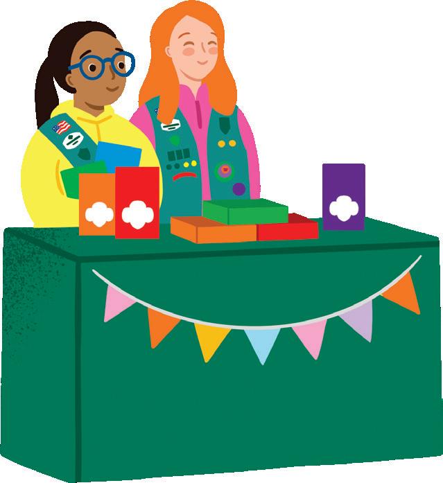 ⚬ Think ahead, but not too far. Only request enough cookies to get your girl’s sales through the next two full weekends. When thinking ahead, decide how many days you will be going doorto-door or hosting a Cookie Stand.