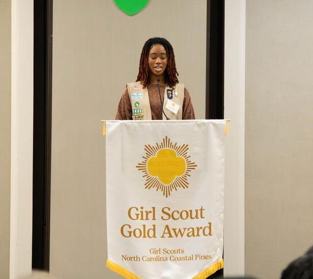 Wake Forest Girl Scout Caden H. turned empathy into leadership through her Girl Scout Silver Award project by crocheting and donating more than 50 stuffed animals to local police departments to comfort children experiencing crisis or trauma. After the Zebulon Police Department shared her story on social media, her service gained national attention and led to a television interview, community recognition, and a special ceremony honoring her work. With support from her detective mentor, Caden also received a $3,000 scholarship—showcasing how Girl Scouts inspire compassion, courage, and meaningful change.