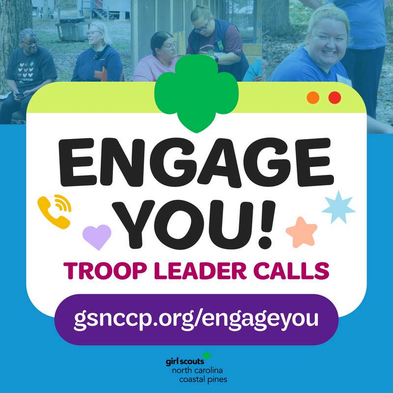 Level up your troop leadership with our new Engage You calls! These quick, interactive sessions are here to help you thrive as a Girl Scout leader after New Leader Training Click on the link below to find times and dates offered for each call and to register.