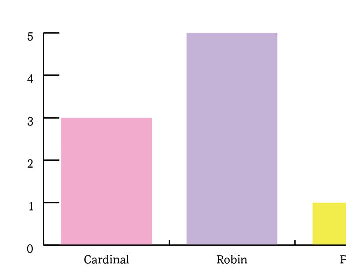 4. Count your tally marks. When you’re done, add your tally marks to nd the total number for each kind of bird. Add these numbers together to nd the total number of birds you saw.