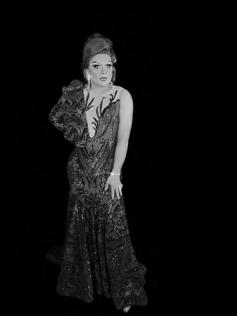 Dancing is what I wanted to do—it brought me joy, freedom, and a place to escape the ugly in the world—and color guard gave me my first “stage” to showcase exactly who I was. Little did I know that my color guard instructor would be my very own drag mother many (many) years later. Color guard was my superhero, a safety net, and a constant for the majority of my life. I graduated high school involved in every season, and eventually went on to march Drum Corps International with The Blue Knights of Denver, CO, in 2011 & 2012, and later The Cavaliers of Chicago, IL, in 2013, 2014, & 2015. It was there that I eventually became a 6 year staff member and movement choreographer and where I saw MY creations come to life on worldwide scale for the first time. I also had the honor of marching with The Pride of Cincinnati of Cincinnati, OH in 2016 where we took home the gold medal at WGI World Championships. From performing, it was then off to teaching, and I moved to Houston, TX, to begin my teaching career. There I continued to create the same beauty, and build the same confidence, in color guard students from all around. I was able to continue the professional competitiveness and could give other kids just like me the same safety that I had. While living in Houston this also the time I saw my first drag show, hosted by our very own Miss Gay America 2024 Dessie Love Blake. Fun side story: my first cast audition was actually a casting call by Dessie for new entertainers, and being the new, naive queen that I was, sent in my reel and got no response. Never would I have thought that less than a year later I would be hitting the National stage with her and in the same group.