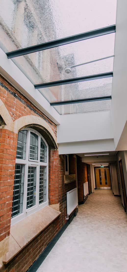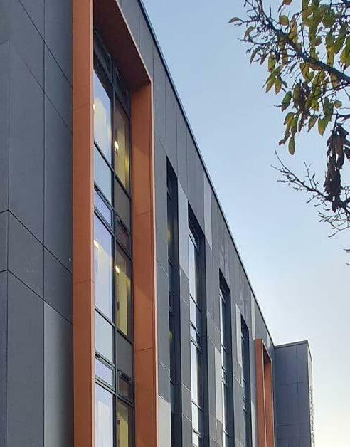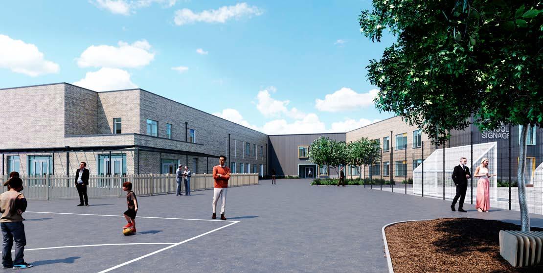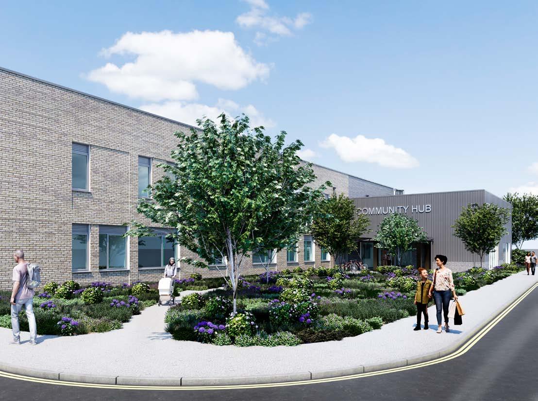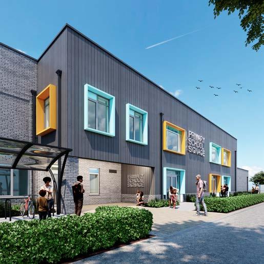 The two-form entry school and community centre are positioned around a new public square and form a key part of the wider Landimore Park Sustainable Urban Extension which, once complete, will include a mix of two-, threeand four-bedroom homes, totalling around 750 properties. Flexibility was a key design consideration, with the school being designed to allow for expansion to a three-form entry in the future.