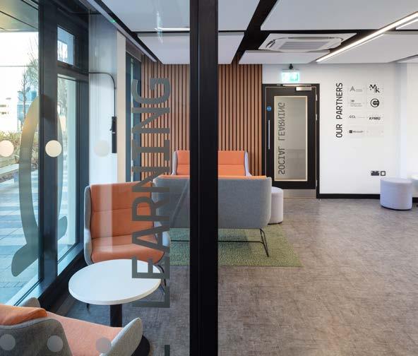 The internal refurbishment and interior design works carried out at Milton Keynes College have resulted in a fantastic space, known as The Chaffron Centre. The Centre brings together companies and educators in collaboration, offering business workspace and meeting facilities to both students and the business community.