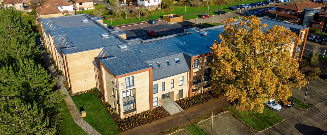Located in the heart of the community, the new residential development provides a mix of private and affordable housing, including rental and shared ownership in the form of 30 no twobed apartments. Working closely with the client, the team ensured that the design of the building was in keeping with the surrounding traditional style of housing, whilst incorporating feature bronze colour cladding panels to provide a focal point for the building.