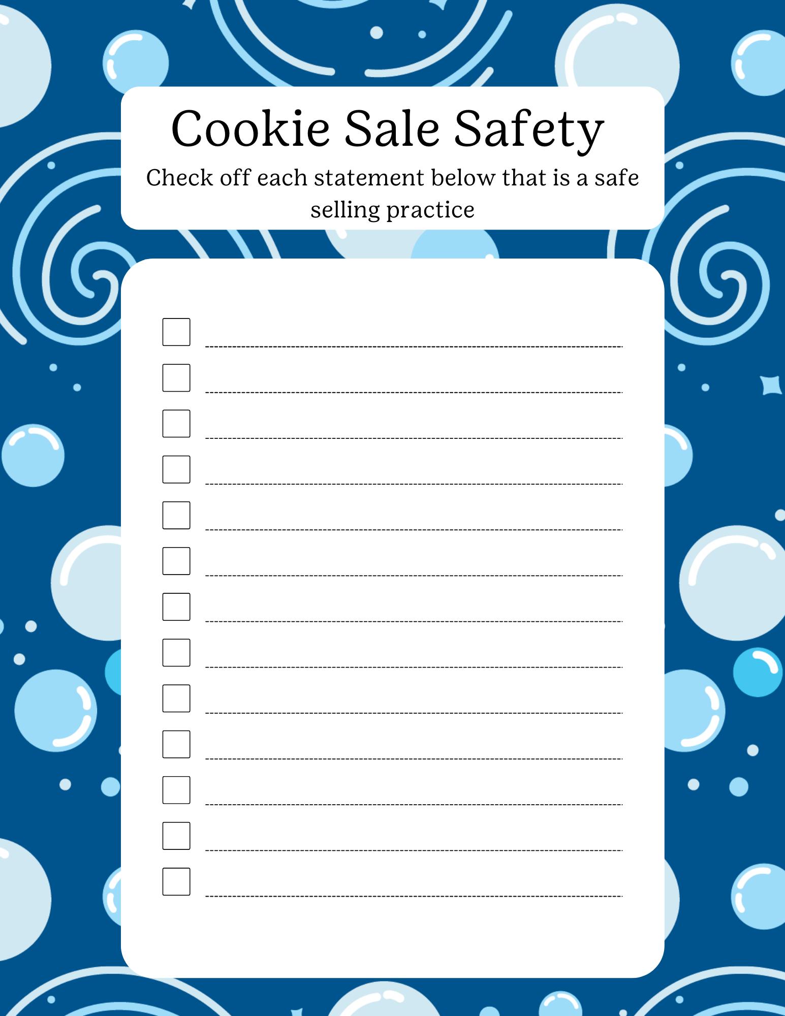 Please Note: If you are going to sample cookies or provide refreshments, be sure to ask the girls about any potential allergies they may have.