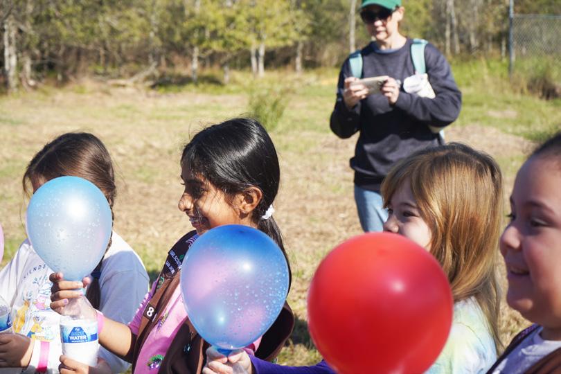 Girls also dove into exciting STEM projects. They used baking soda and vinegar to create carbon dioxide and inflate balloons and built their own mini terrariums. And as a special highlight, the Green Starlettes performed and hosted a lively dance clinic that had everyone moving!