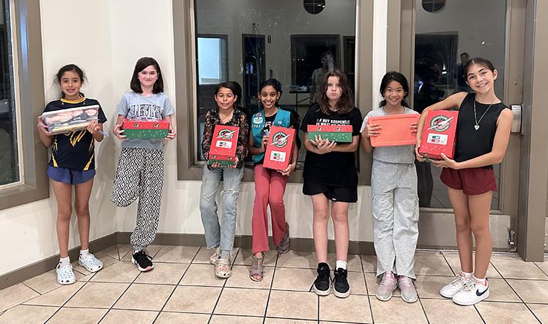 Troop 110065 hosted a successful Samaritan's Purse Operation Christmas Box shoe drive. Through community donations, their personal donations, and funds earned from cookie sales, the troop filled boxes to learn about gratitude and helping others.