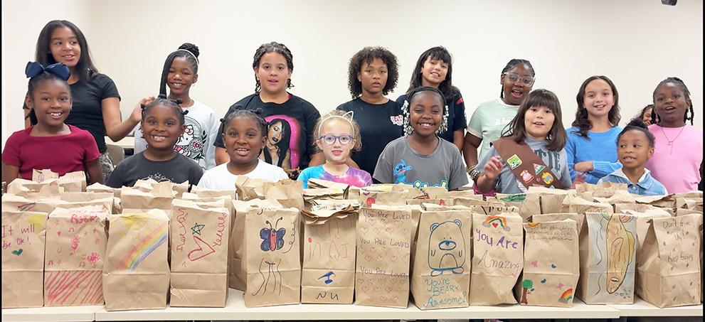 Troop 118108 donated prepackaged food and drinks, decorated bags with positive affirmations and packed meals for children in the Greater Houston area. All 87 meal bags were donated to Kids Meals Inc.