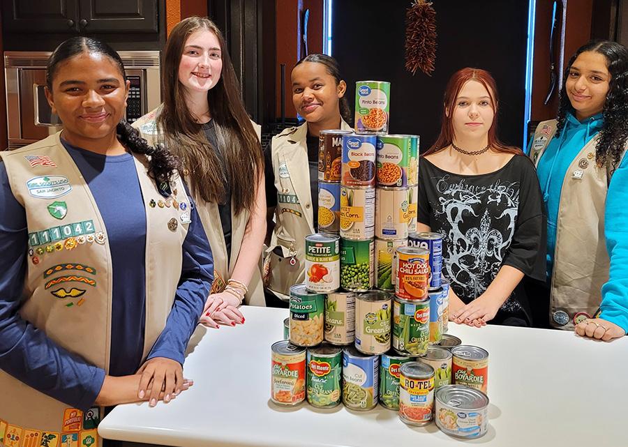 Troop 111042 from Wildflowers Community collected canned goods for International Day of the Girl.
