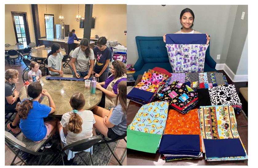 Advika from Troop 153096 rallied a group of youth and adult volunteers to sew pillowcases for veterans, active-duty military, and first responders. She organized a series of workdays that began with a fabric-cutting session, followed by multiple sewing workshops. The team sewed and donated nearly 90 pillowcases to the veterans hospital and first responders in the community.
