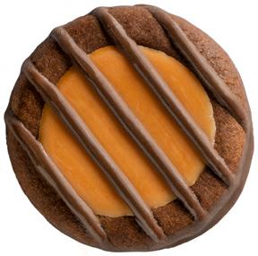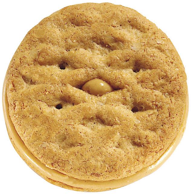 Indulgent brownie-inspired cookies with caramel flavored crème and a hint of sea salt