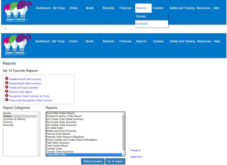 3. Under “Reports” select either Recognition Order Summary by Troop to view your troop rewards or Recognition Order Summary by Girl to view each girl’s rewards.