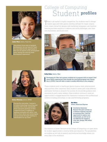 Colby Duke, Intern, Uber “ Developing for Uber last summer enabled me to program with an impact I had never before experienced. Even though the internship program was remote due to COVID, I was still able to make a notable difference in the company.”