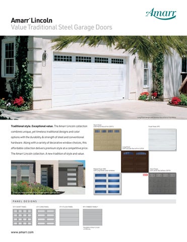 Traditional style. Exceptional value. The Amarr Lincoln collection combines unique, yet timeless traditional designs and color options with the durability & strength of steel and conventional hardware. Along with a variety of decorative window choices, this affordable collection delivers premium style at a competitive price. The Amarr Lincoln collection. A new tradition of style and value.