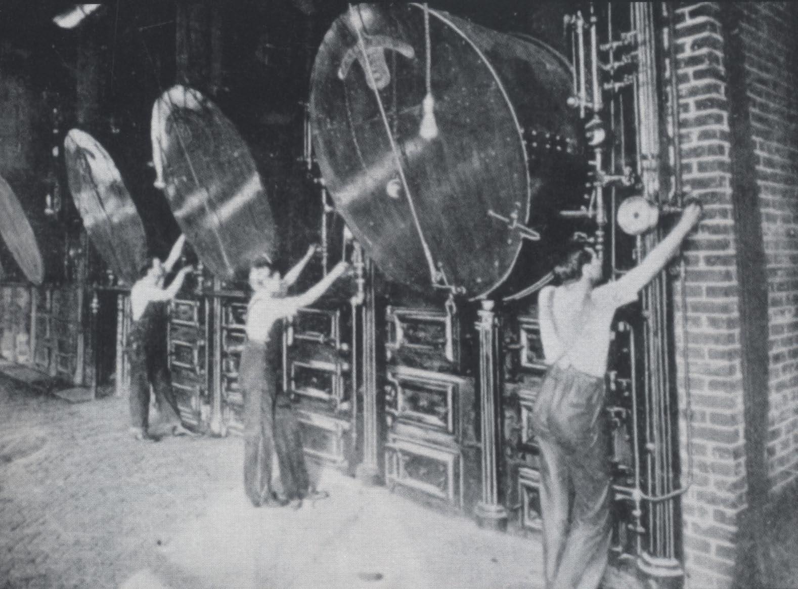 Georgia Tech co-op students in 1912 testing boilers at the Atlanta Water Works station on Hemphill Avenue.