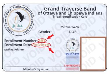 Sign in using your Enrollment Number and Enrollment Date found on your Tribal ID Card.