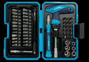 Includes • 20 metric sockets: 4-13mm in both standard and deep lengths • 18 imperial sockets: 3/16”, 7/32”, 1/4”, 9/32”, 5/16”, 11/32”, 3/8”, 7/16”, 1/2” in both standard and deep lengths • 145mm reversible ratchet • 50&150mm extension • 145mm adjustable offset handle • Universal joint SCMT12130