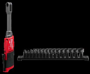 MILWAUKEE 3/8”Dr 56pc Ratchet & Socket Set Includes- • (12) 1/4”–1” standard sockets • (14) 6-19mm standard sockets • (12) 1/4”–1” deep well sockets • (14) 6-19mm deep well sockets