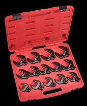 14 Piece Crowsfoot Spanner Set Metric 27-50mm • 27, 29, 30, 32, 33, 34, 35, 36, 38, 41, 43, 46, 48, 50mm • Heavy duty chromium molybdenum steel • Open end style 73201