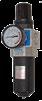 • Float drain for moisture removal • Pressure regulator with built-in filter & auto drain • Controls PSI & removes water and contaminants