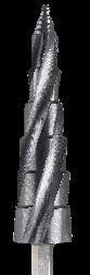 • Step Tip negates the need for a pilot drill in metals and provides extreme drilling speeds in ferrous and non-ferrous metals, plastic and all timbers.