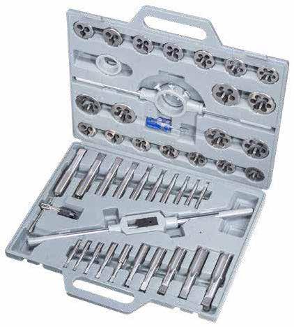 39 Piece Metric / Imperial Tungsten Steel Tap & Die Set Set Includes: Long Handle & T-Handle Tap Wrench, Long Handle Die Wrench, Metric & Imperial Screw Pitch Gauge