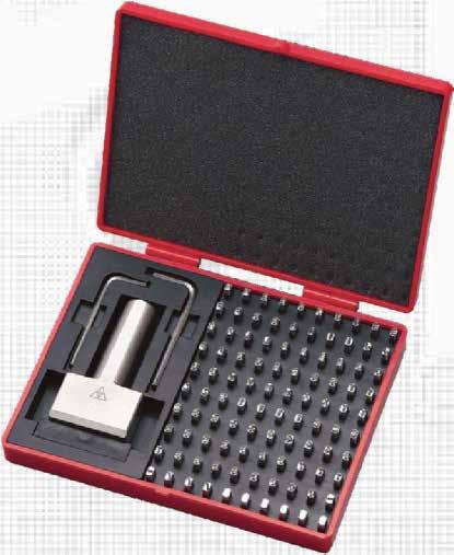 Made from S55C High carbon steel, HRC 58‑60°. 100 Piece set includes: 9 Character Type Holder, hex wrench, A‑Z, 0‑9, & , /,‑ and blank space.