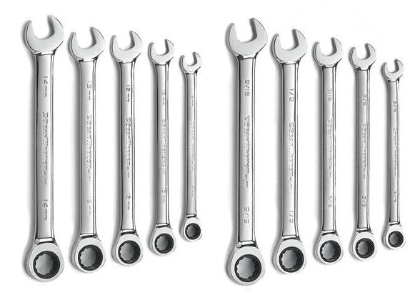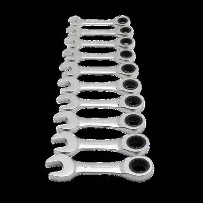 10 Pc. 72-Tooth 12 Point Stubby Ratcheting Combination Metric Wrench Set