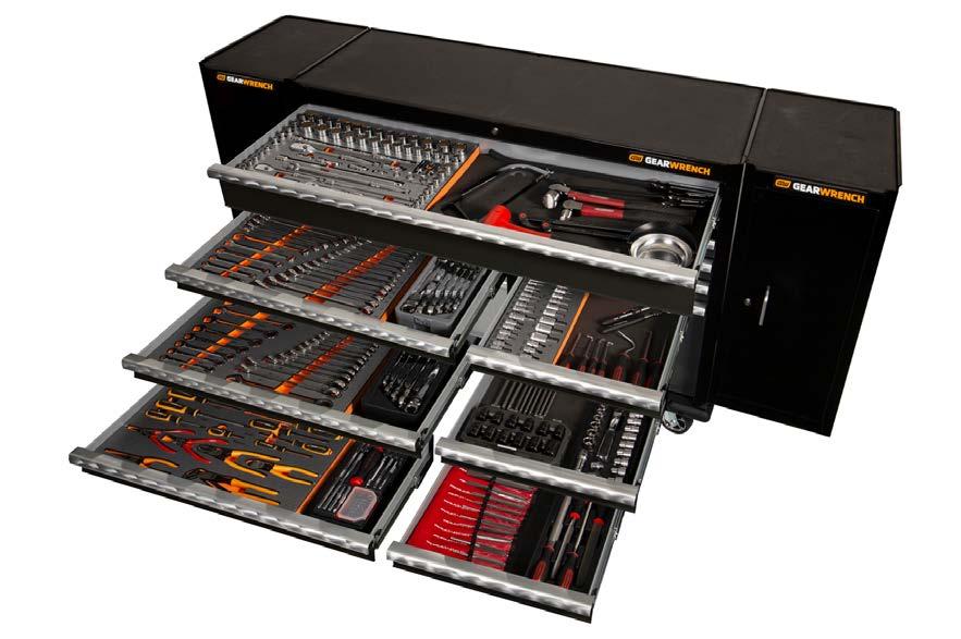 988 PIECE COMBINATION TOOL KIT + 28” CHESTS (X4) + 58” TROLLEYS (X2) + SIDE CABINETS (X2) 77666