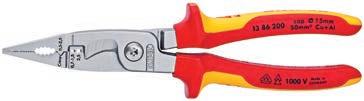 › Multifunctional pliers for the electrical installation - to grip flat and round material, for bending, deburring, cutting cable, stripping and crimping end sleeves (ferrules)