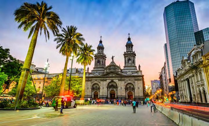 • Chile’s capital, Santiago, which lies beneath the stunning Andes