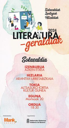 Sakanako Mank-ek, Baztango Udalak, eta Bortzirietako eta Nafarroako Iparraldeko Euskara Mankomunitateek antolatuta, hiru solasaldi izanen dira Sakanan: martxoaren 20an,18:30ean, Altsasuko Iortian, Arantxa Urretabizkaiaren Azken etxea; apirilaren 22an, 19:00etan, Etxarriko liburutegian, Xabier Mendiguren eta Jon Arratibel Xafan-en Oso latza izan da aurkezpen-solasaldia, eta apirilaren 26an, 19:00etan, Uharteko udaletxean, Miren Agur Meaberen Itzulerak