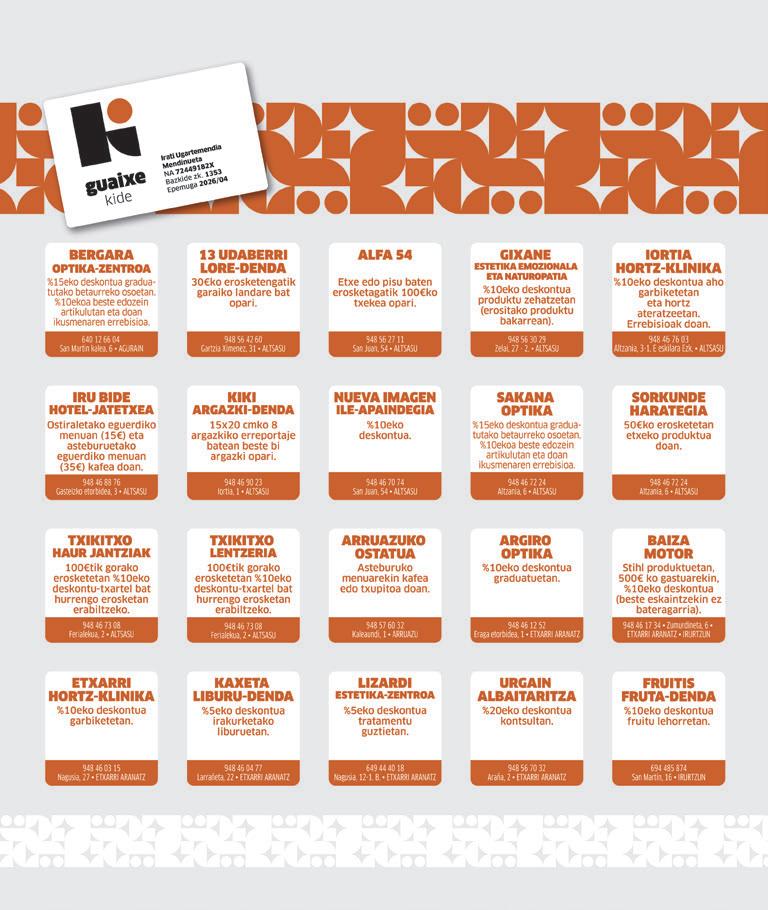 Maketatzailea: Iune Trecet Obeso maketazioa@guaixe.eus GK diseinu zerbitzua: Ainara Santiago Langarika info@gkomunikazioa.eus 619 821 436 Ainhoa Etxeberria Pikabea gk@gkomunikazioa.eus Administrazioa: Gema Lakuntza Lopez admin@guaixe.eus Zuzentzailea: Felix Altzelai Iriarte Lege gordailua: NA-633/1995 Tirada: 3.200